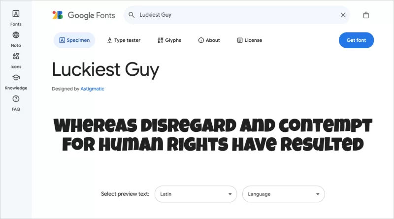 アメコミ風フォントはGoogle Fontsから無料でダウンロードできる「Luckiest Guy」を使用します。