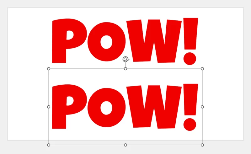 テキストボックスに「POW!」と入力します。作例は、フォントサイズを「250pt」、文字の塗りつぶしを「Hex:#F00000」に設定しています。
