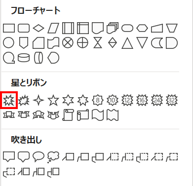 「ホーム」タブ →「図形描画」→「爆発:8pt」を選択します。