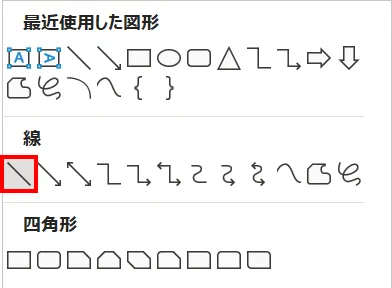「ホーム」タブ →「図形描画」→「線」を選択します。