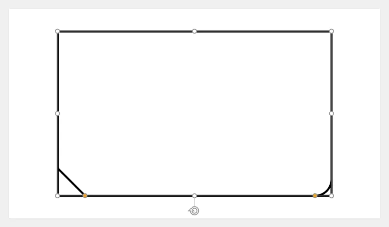 「四角形:1つの角を切り取り1つの角を丸める」を複製して上下左右反転(反転方法を参照)し、スライドと上下左右中央揃えで配置します。