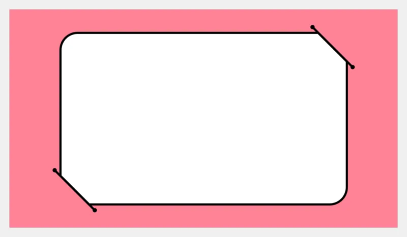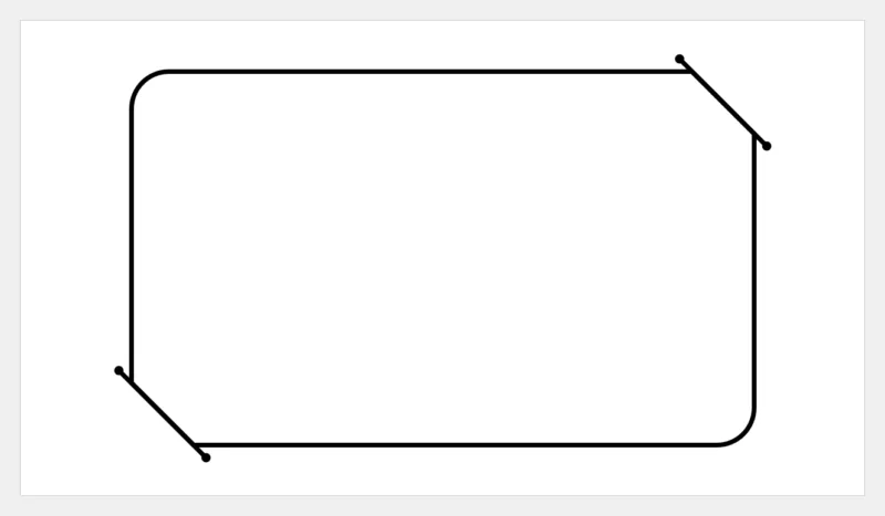 すると、右上と左下の角が面取りになった角丸四角形ができます。