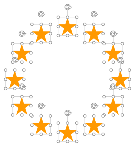 図形が12個の場合、右回りに「30°」ずつ増やしながら回転させていきます。