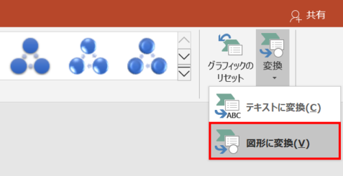続いて、不要な図形を削除するためにSmartArtから図形に変換します。