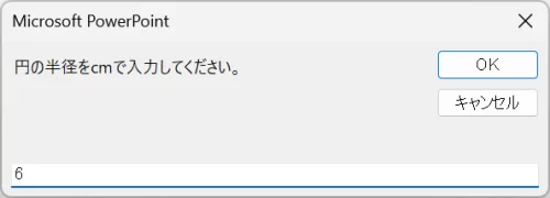 ダイアログボックスが開くので、円の半径を入力して「OK」をクリックします。作例では「6」と入力しました。