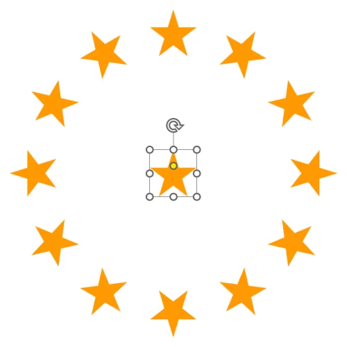 PowerPointで図形を放射状に回転コピーして配置する方法をご紹介します。