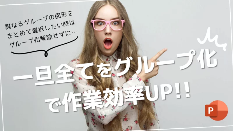 PowerPointでIllustratorの「ダイレクト選択ツール」の機能に近い「グループ化選択」の使い方をご紹介します。