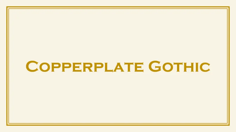 Copperplate Gothic(カッパープレートゴシック)は、小文字が大文字のデザインになっているのが特徴で、高級感のあるロゴや見出しを作りたいときに使用すると効果的なフォントです。